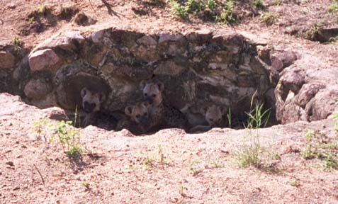 | Here's a little picture of Pauline and me standing above a cliff, and there's nothing but fog and the plains below us. Since there was nothing but fog and the plains below, I cropped all that, and you can just have a look at us. | Several impala, and a wild boar. The impala were called the "Big Mac" of game, because they were the most common kill in the bush. |