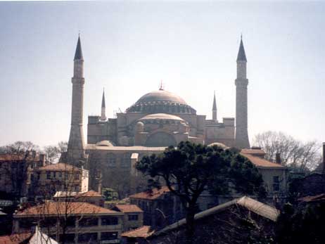 When the Byzantines were in Istanbul (except they called it Constantinople, and while we're at it, they probably called themselves Romans), and running the show, they built the Aya Sophia. It was a church then, or a cathedral (the distinction eludes me), not a mosque at all. The righteous and noble Europeans prayed to the Heavenly Father there for many years, while butchering or raping anyone who wouldn't swear that Christians were the most loving and kind creatures to ever walk the earth. Something like that. I might be making this up.
